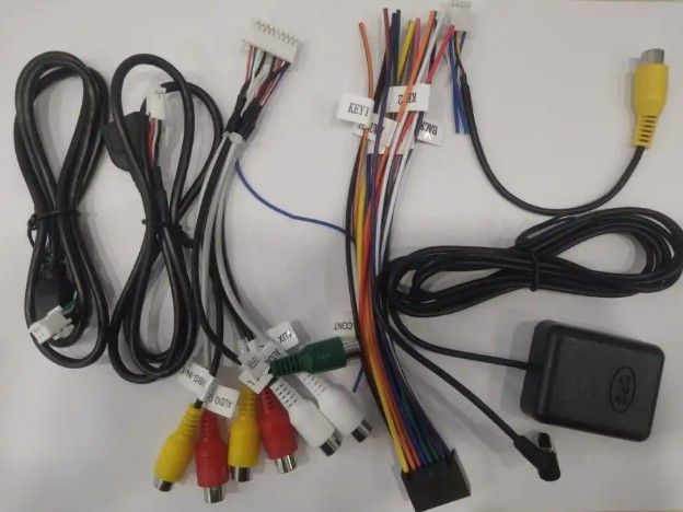 Магнитола, штекер питания, 2 USB провода, GPS-антенна, RCA выходы, CamVin провод (для камеры), крепления
